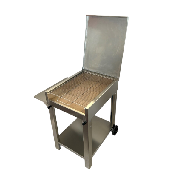 Barbecue a carbonellaInox Un barbecue semplice, ma estremamente robusto, pratico e comodo, da utilizzare in ogni momento. La struttura compatta lo rende adatto a tutti gli spazi esterni, anche quelli più piccoli.  Struttura in acciaio inox Mattoni refrattari Manici estraibili e ruote per lo spostamento Mensola laterale 100% Made in Italy Caratteristiche tecniche Combustibile: carbonella Dimensioni esterne: L56 x P74  x H91/160 cm Dimensioni zona cottura: L48 x P63 cm   Accessori in dotazione Griglia in acciaio inox Portfolio Sei interessato? Scrivici